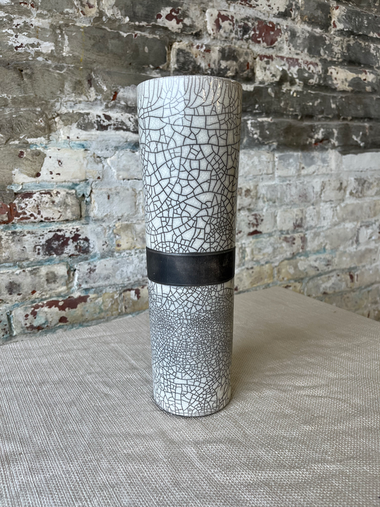 Crackle-Glazed Tall Cylinder Vase with Black Band