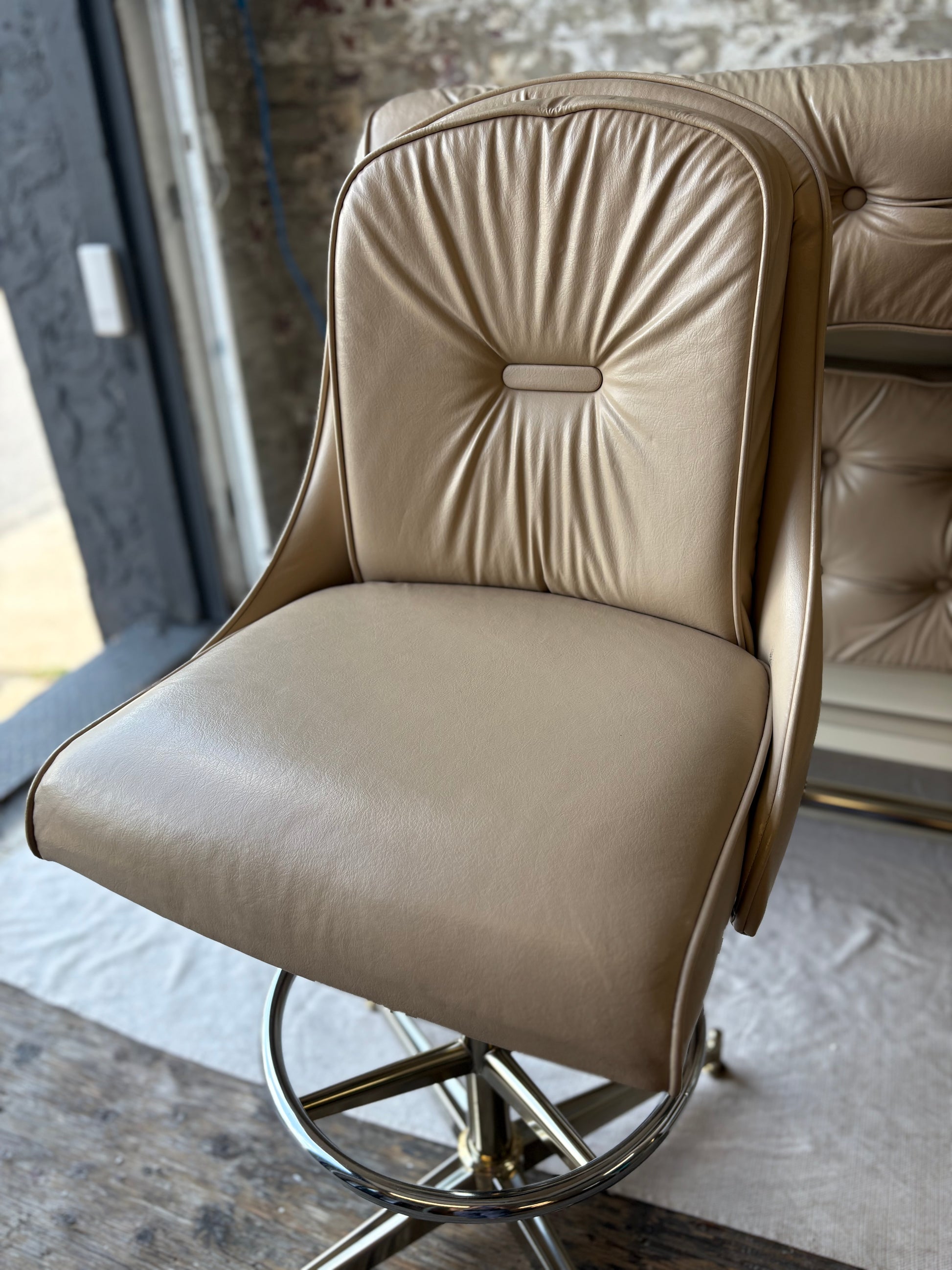Beige Vinyl Tufted Bar with Matching Swivel Stools