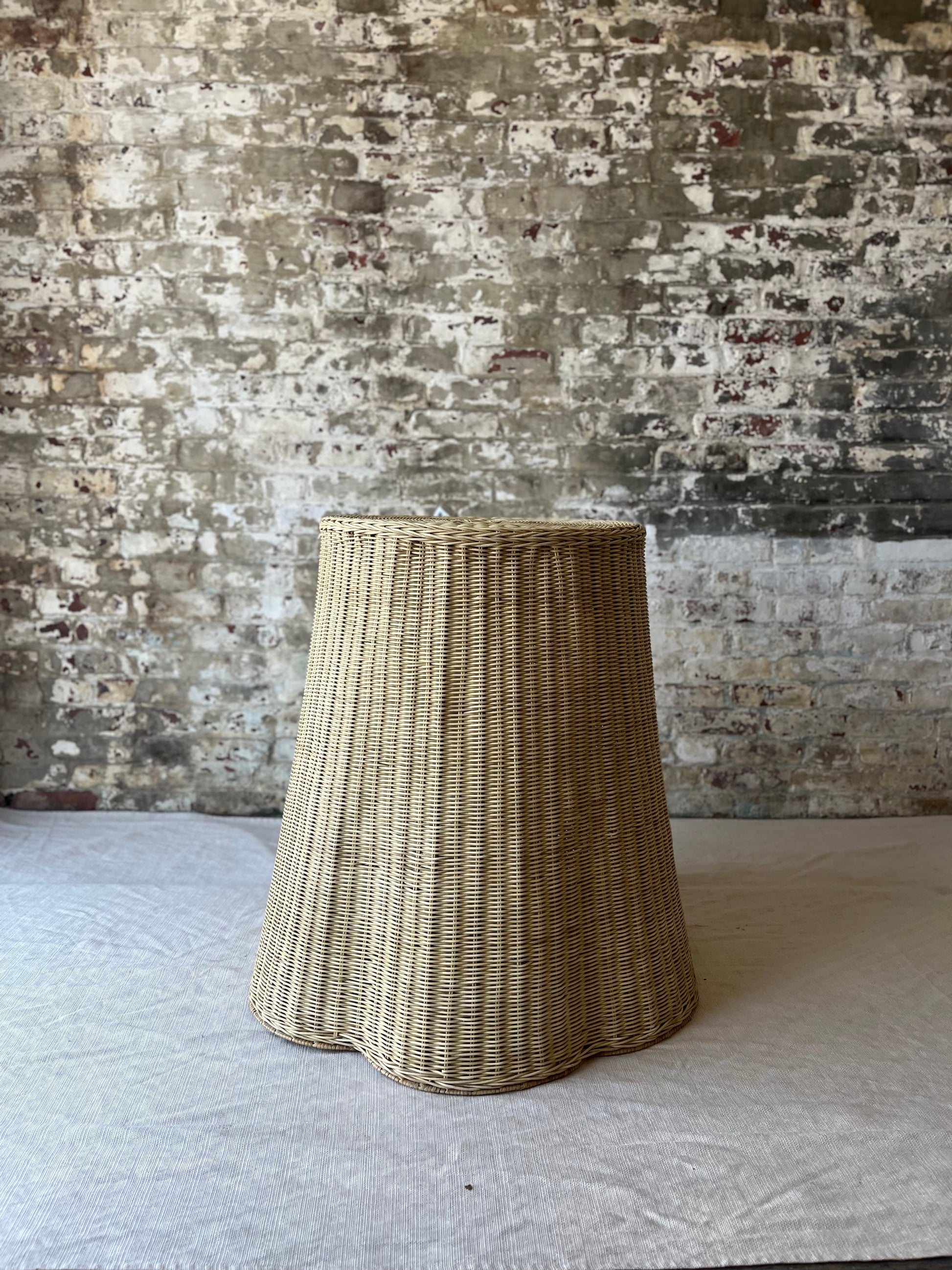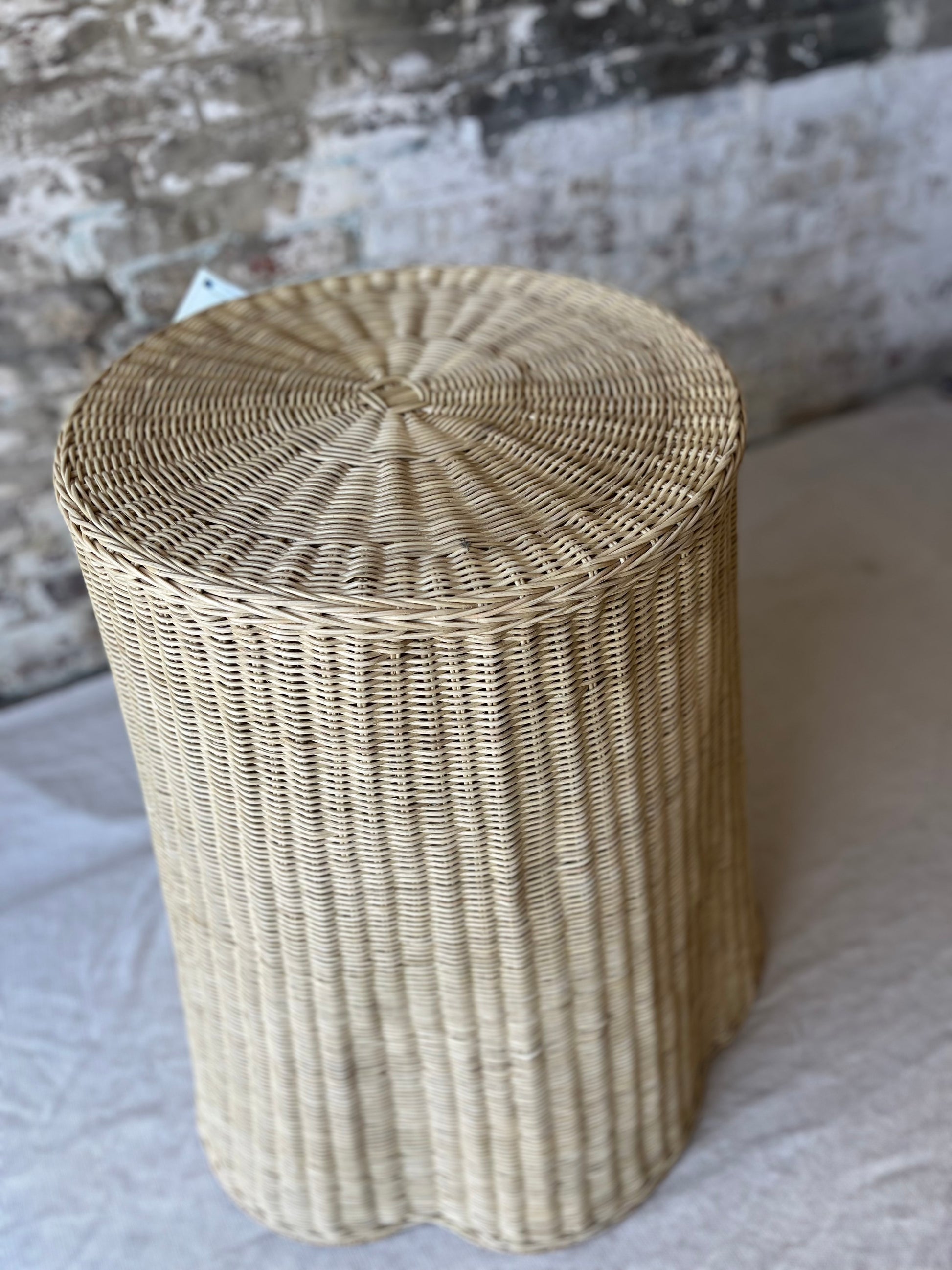 Bring texture and warmth to your space with this handwoven wicker side table, designed to blend organic charm with understated elegance. Featuring a graceful scalloped base and gently flared silhouette, this table adds a natural touch to any room—perfect for coastal, cottage, or bohemian-inspired interiors. Crafted from durable rattan, it’s equally at home next to a reading chair, as a unique nightstand, or as a decorative accent in an entryway.