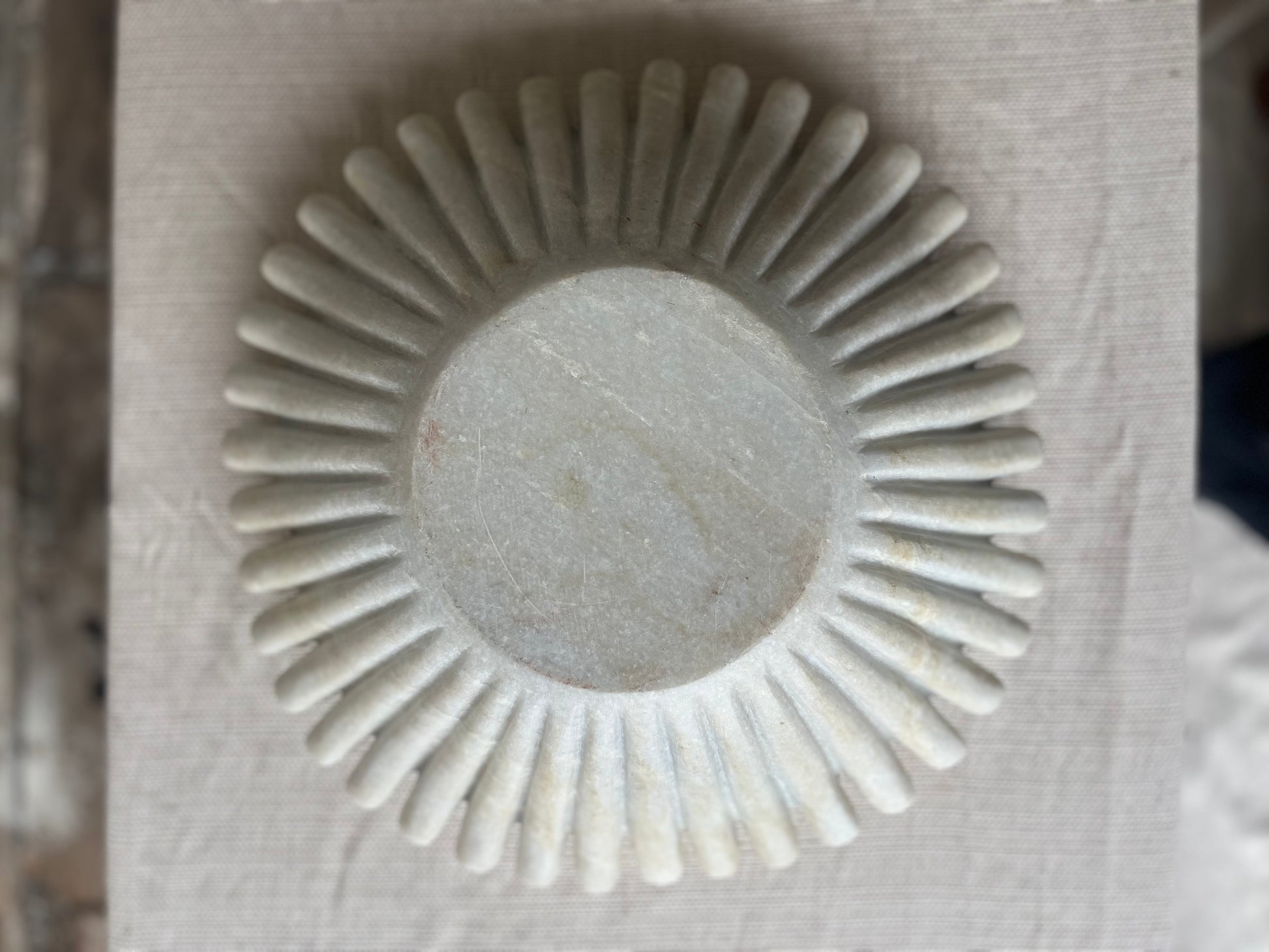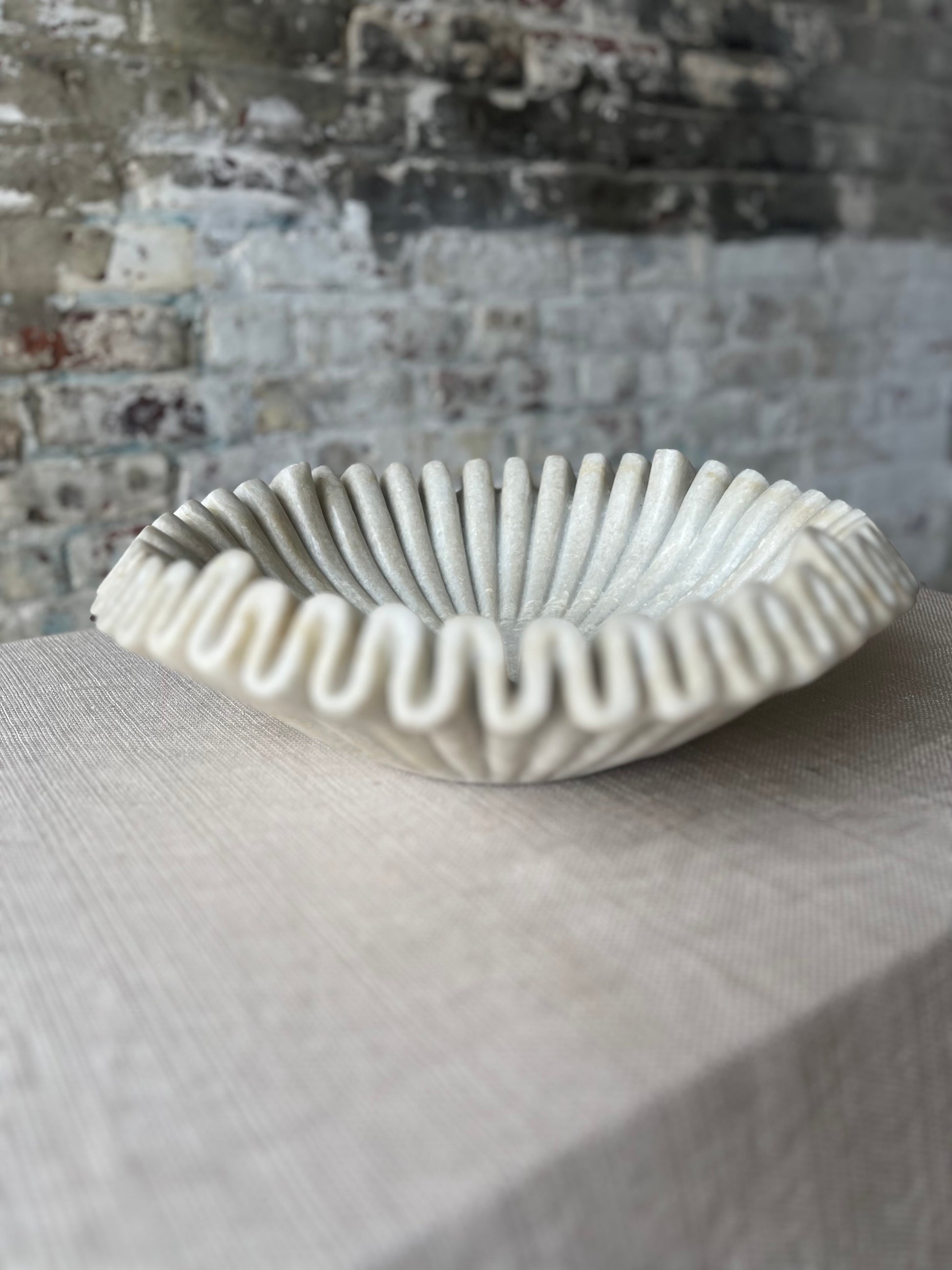 Elevate your interior with this stunning handcrafted marble bowl featuring a captivating ripple design. With its organic pleated edge and natural ivory glaze, this piece doubles as functional art — perfect as a centerpiece, catch-all, or simply displayed as a statement decor object.