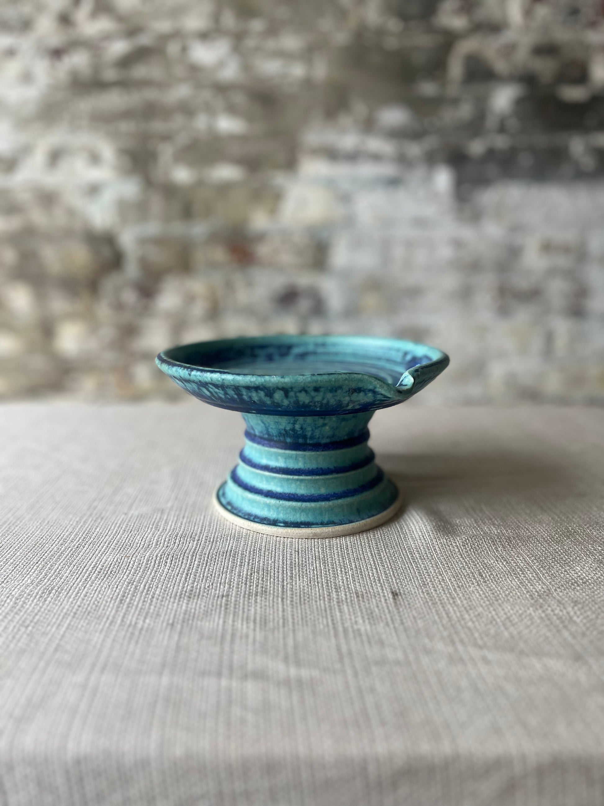 Pottery Footed Dish – Spiral Glaze in Blue & Turquoise